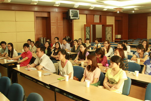 銷售們?cè)诼?tīng)嘉賓分享經(jīng)驗(yàn)專心聽(tīng)培訓(xùn)老師講解