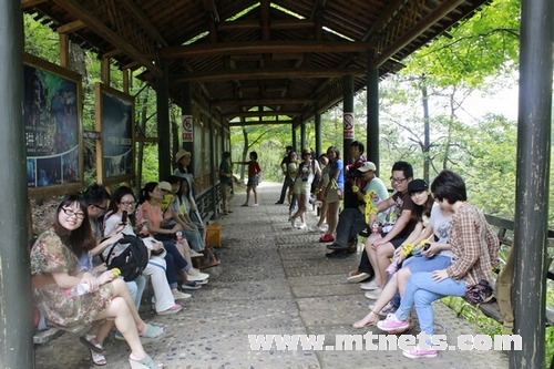 站在山腳,抬眼望去一片綠海。入景區(qū)門,綠樹掩映,修竹深深,心情亦隨之寧靜;過金牛潭,入青春世界,童趣玩樂,興致盎然。沿溪行,溪澗頑石累累,大小不一,形態(tài)各異,千奇百怪。拾級而上,山勢平緩,峰巒疊翠。時(shí)有索橋掛于溪流之上,下有碧潭,深不見底,水色似翡翠,如瑪瑙,纖毫畢現(xiàn),嘆為奇觀。山頂龍?zhí)镀俨硷w流直下,蔚為壯觀,置身其下,涼意襲身,愜意無比。登高遠(yuǎn)眺,山道蜿蜒,梯田青青,屋舍依疏,美不勝收。下山時(shí)有滑鼠可坐,5車連成一組,沿鐵軌滑下,中有彎道,速度極快,尖叫中雙手緊拉手剎,驚險(xiǎn)刺激。雖下車時(shí)或覺腿軟,但也不失為一次難忘的經(jīng)歷。