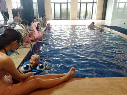 在露天泳池戲水