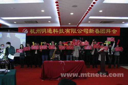 濃濃喜氣迎新春,點(diǎn)燃激情,挑戰(zhàn)2009。1月17日,杭州明通科技有限公司09年新春團(tuán)拜會(huì)在杭州百家苑隆重舉辦。公司總經(jīng)理陳勝明對(duì)全體明通人表示了新年祝賀和衷心的感謝。陳總在團(tuán)拜會(huì)上致辭,回顧2008年輝煌成績(jī),展望2009年精彩明天。他對(duì)08年公司規(guī)模榮譽(yù)、銷售業(yè)績(jī)、管理制度等方面取得的斐然成績(jī)表示充分的肯定,對(duì)發(fā)展中存在的不足和缺憾進(jìn)行深入的總結(jié)。表示09年明通將繼續(xù)保持快速的發(fā)展和擴(kuò)張之路,金融危機(jī)的冬天不會(huì)阻擋明通大步前進(jìn)的步伐。堅(jiān)持以創(chuàng)新發(fā)展的思路,全面升級(jí)服務(wù)環(huán)節(jié),以提升企業(yè)網(wǎng)絡(luò)競(jìng)爭(zhēng)力為使命,為客戶創(chuàng)造更大的價(jià)值,推動(dòng)行業(yè)企業(yè)電子商務(wù)發(fā)展進(jìn)程。他激勵(lì)所有員工迎難而上,充滿激情,一起挑戰(zhàn)2009!