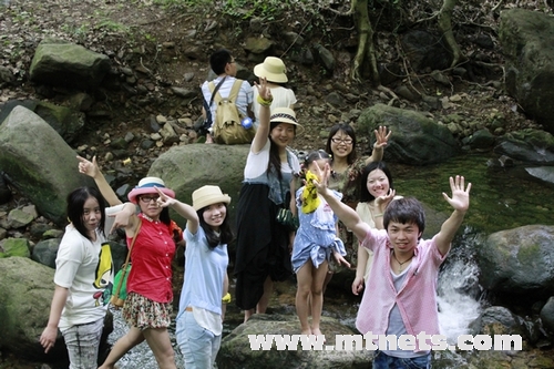 站在山腳,抬眼望去一片綠海。入景區(qū)門,綠樹掩映,修竹深深,心情亦隨之寧靜;過金牛潭,入青春世界,童趣玩樂,興致盎然。沿溪行,溪澗頑石累累,大小不一,形態(tài)各異,千奇百怪。拾級而上,山勢平緩,峰巒疊翠。時(shí)有索橋掛于溪流之上,下有碧潭,深不見底,水色似翡翠,如瑪瑙,纖毫畢現(xiàn),嘆為奇觀。山頂龍?zhí)镀俨硷w流直下,蔚為壯觀,置身其下,涼意襲身,愜意無比。登高遠(yuǎn)眺,山道蜿蜒,梯田青青,屋舍依疏,美不勝收。下山時(shí)有滑鼠可坐,5車連成一組,沿鐵軌滑下,中有彎道,速度極快,尖叫中雙手緊拉手剎,驚險(xiǎn)刺激。雖下車時(shí)或覺腿軟,但也不失為一次難忘的經(jīng)歷。